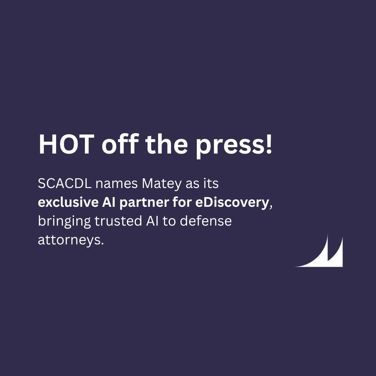 Austin, TX - Oct 20, 2025 | Matey, the AI platform designed to help legal professionals save time and strengthen case preparation, is proud to announce a new partnership with the South Carolina Association of Criminal Defense Lawyers (SCACDL). Through this collaboration, Matey becomes SCACDL’s exclusive AI partner for eDiscovery, supporting defense attorneys across South Carolina with trusted, transparent technology.